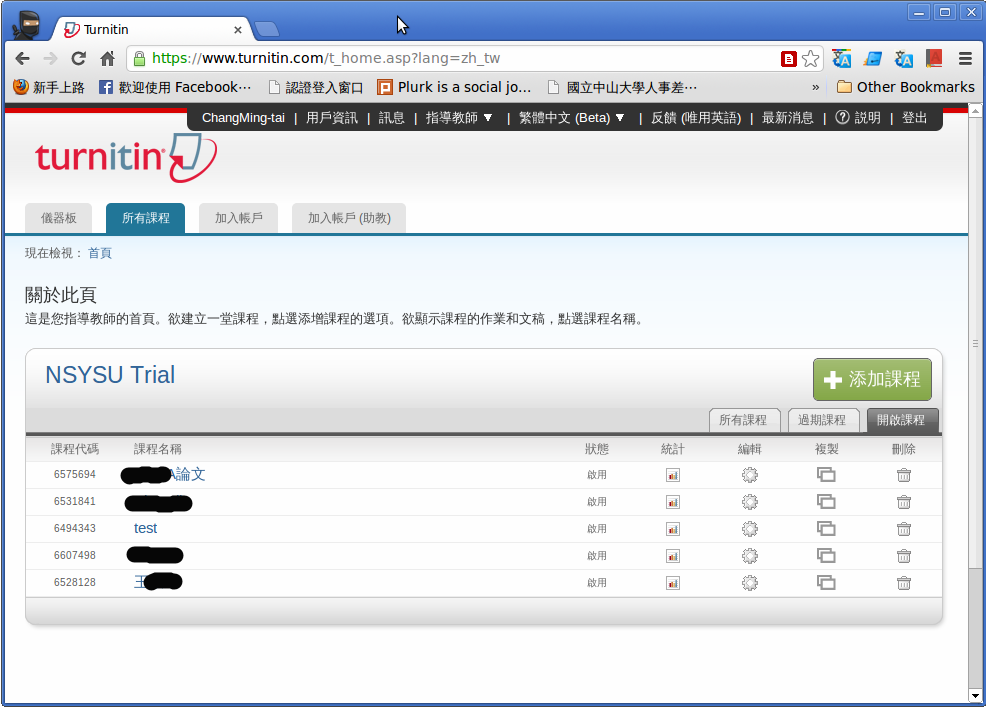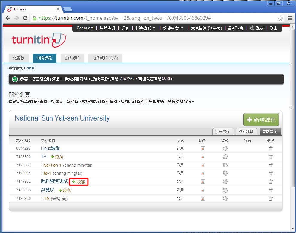 您已經被帳戶管理員,Ming-tai Chang,以指導教師的身份添加至"National Sun Yat-sen University"的 Turnitin 帳戶。