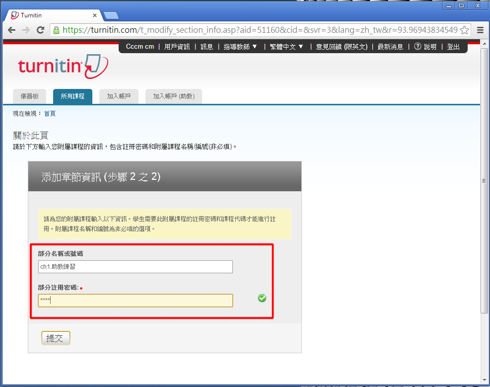 (1) 申請 Turnitin 指導老師帳號